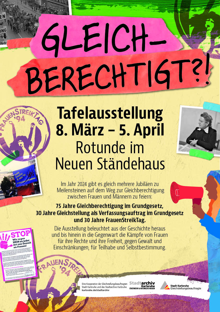 GLEICHBERECHTIGT?! Tafelausstellung zum Frauentag (in Kooperation mit dem Gleichstellungsbüro der Stadt Karlsruhe) | Plakat 907 KB (JPG)